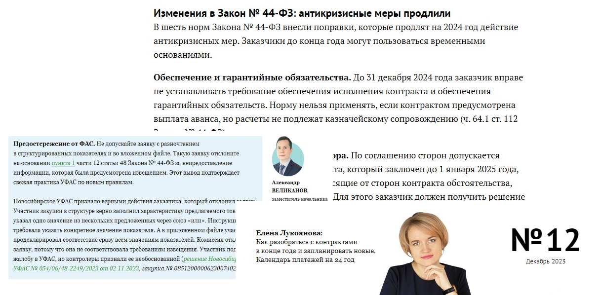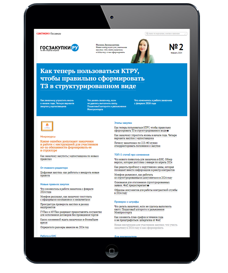 В каждом номере памятка с важными датам, чек-листами или поэтапным расписанием задач месяца в закупках
